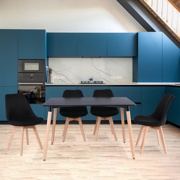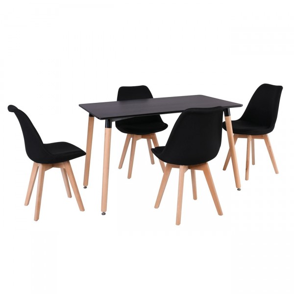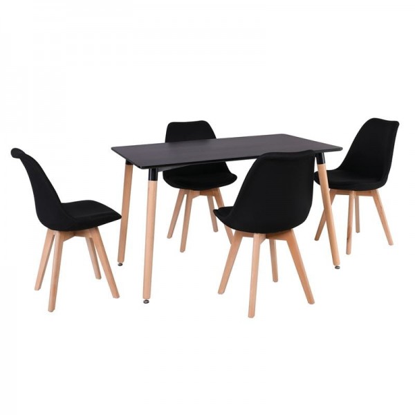MARTIN Set Τραπεζαρία: Τραπέζι + 4 Καρέκλες, MDF Μαύρο - Οξιά Φυσικό, Ύφασμα Μαύρο