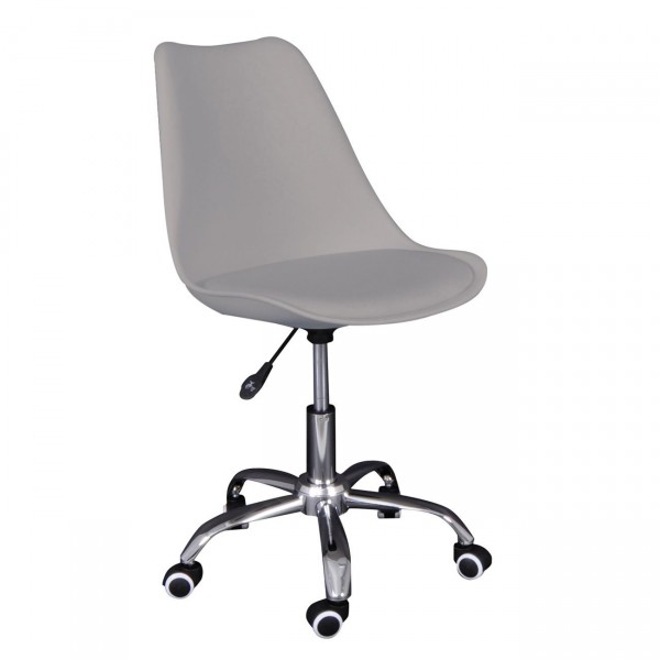 MARTIN-W Καρέκλα Γραφείου, Βάση Χρώμιο, PP & Pu Γκρι, Μονταρισμένη Ταπετσαρία