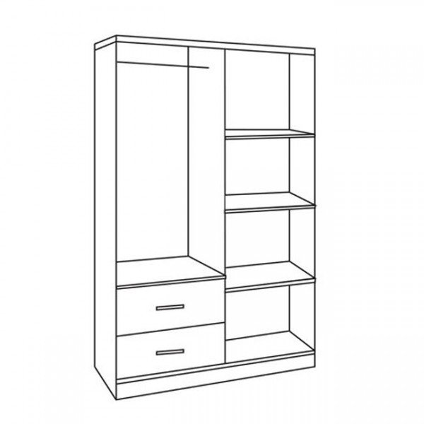 Στο εσωτερικό της ντουλάπας υπάρχει μεταλλικό δοκάρι ειδικά κατασκευασμένο για κρέμαση ρούχων και στο κάτω μέρος υπάρχουν 2 μεγάλα συρτάρια για αποθήκευση ρούχων