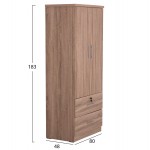 Η δίφυλλη ντουλάπα REINA είναι μια πρακτικότατη ντουλάπα που έχει φτιαχτεί με γνώμονα την όσο το δυνατόν καλύτερη εκμετάλλευση του χώρου. Έχει 2 πόρτες, αλλά με απροσδόκητα άνετους χώρους στο εσωτερικό της, και διαθέτει απλά μια μπάρα κρέμασης ρούχων. Στο κάτω μέρος υπάρχουν 2 συρτάρια, ένα εκ των οποίων διαθέτει κλειδαριά. Είναι κατασκευασμένη από μελαμίνη σε SONAMA OAK χρώμα και αισθητικά μπορεί να ταιριάξει με πολλά άλλα στυλ, χάρη και στις «καθαρές» γραμμές της.