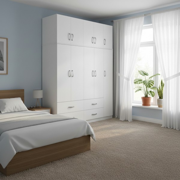 Μοντέρνα Αισθητική: Καθαρό, λιτό design με ομαλές επιφάνειες και διακριτικά μεταλλικά χερούλια που ταιριάζει αρμονικά σε κάθε υπνοδωμάτιο ή χώρο φιλοξενίας.