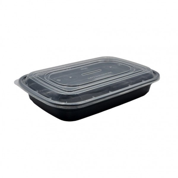 Σκεύος ορθογώνιο Μαύρο PP με Αποσπώμενο Διαφανές Καπάκι 750cc 21 5x14 5xΥ4 5cm Σετ 50 c534281