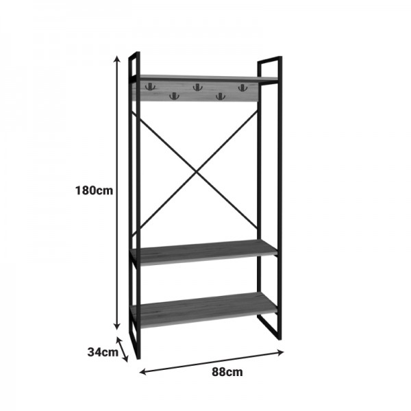 Με αυτό το μοντέρνο έπιπλο εισόδου Levento, μπορείτε να την μετατρέψετε σε έναν χώρο που είναι ταυτόχρονα όμορφος και λειτουργικός.Σχεδιασμένο για να καλύπτει όλες τις καθημερινές σας ανάγκες, το έπιπλο αυτό προσφέρει μια ολοκληρωμένη λύση αποθήκευσης. Κρεμάστε άνετα τα παλτό, τα κασκόλ και τις τσάντες σας στους ενσωματωμένους γάντζους, τοποθετήστε τα παπούτσια σας τακτοποιημένα στο κάτω ράφι και χρησιμοποιήστε τα πάνω ράφια για να προσθέσετε την προσωπική σας πινελιά με διακοσμητικά αντικείμενα ή βιβλία.Τεχνικά χαρακτηριστικά: