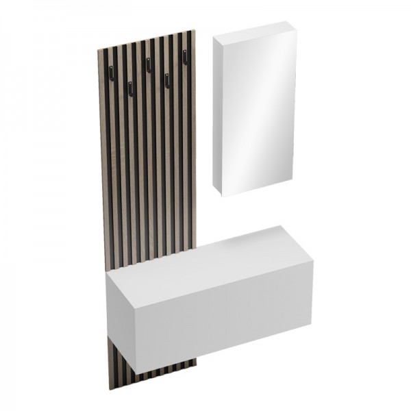 Συνδυάζει καθρέφτη, κρεμάστρα και αποθηκευτικό χώρο σε ένα ενιαίο κομμάτι, εξοικονομώντας χώρο και προσφέροντας πρακτικές λύσεις.