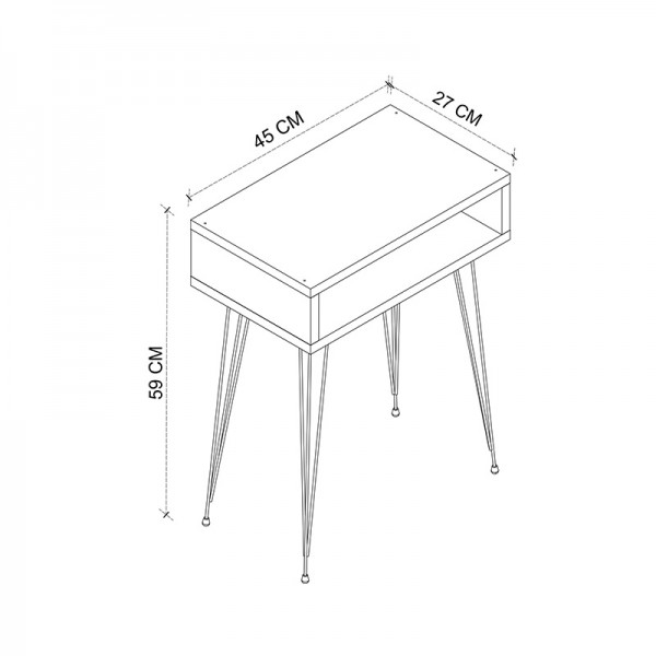 Το κομψό και μοντέρνο κομοδίνο Naida προσφέρει έναν τέλειο συνδυασμό στυλ και λειτουργικότητας για τη σύγχρονη κρεβατοκάμαρα. Οι καθαρές γραμμές και ο μινιμαλ σχεδιασμός του τονίζονται από κομψά, λεπτά μαύρα μεταλλικά πόδια, προσδίδοντας μια πινελιά βιομηχανικής κομψότητας.Το κομοδίνο Naida είναι μια εκλεπτυσμένη προσθήκη που αναβαθμίζει κάθε διακόσμηση υπνοδωματίου, προσφέροντας τόσο αισθητική γοητεία όσο και καθημερινή χρησιμότητα.Τεχνικά χαρακτηριστικά: