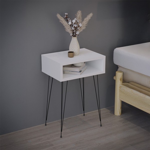 Το κομψό και μοντέρνο κομοδίνο Naida προσφέρει έναν τέλειο συνδυασμό στυλ και λειτουργικότητας για τη σύγχρονη κρεβατοκάμαρα. Οι καθαρές γραμμές και ο μινιμαλ σχεδιασμός του τονίζονται από κομψά, λεπτά μαύρα μεταλλικά πόδια, προσδίδοντας μια πινελιά βιομηχανικής κομψότητας.Το κομοδίνο Naida είναι μια εκλεπτυσμένη προσθήκη που αναβαθμίζει κάθε διακόσμηση υπνοδωματίου, προσφέροντας τόσο αισθητική γοητεία όσο και καθημερινή χρησιμότητα.Τεχνικά χαρακτηριστικά: