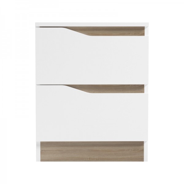 Το μοντέρνο και λειτουργικό κομοδίνο Verena II αποτελεί μια κομψή προσθήκη σε κάθε υπνοδωμάτιο. Ο μινιμαλ σχεδιασμός και η επιλογή των χρωμάτων του , προσδίδει μια ζεστασιά και μια αίσθηση φωτεινότητας στον χώρο, ενώ τα δύο ευρύχωρα συρτάρια προσφέρουν πρακτική αποθήκευση για βιβλία, προσωπικά αντικείμενα και άλλα απαραίτητα.