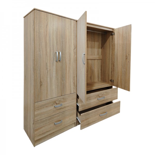 Περιλαμβάνει τέσσερις πόρτες, εσωτερικά φέρει ράγα για κρεμάστρες ενώ κάτω φέρει τέσσερα μεγάλα συρτάρια για την αποθήκευση ρούχων και αξεσουάρ.