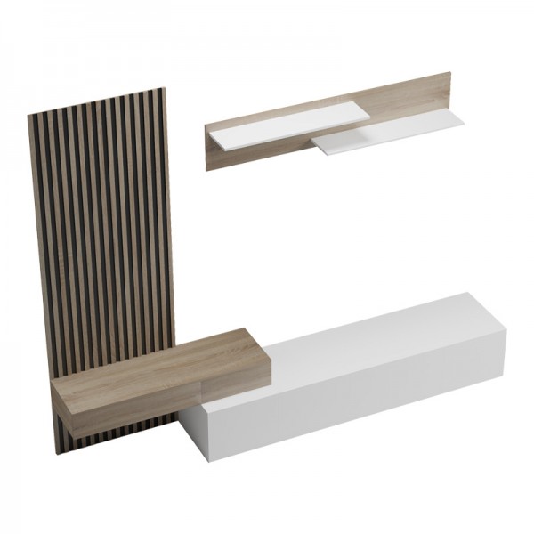 Αυτό το κομψό σύνθετο σαλονιού συνδυάζει την πρακτικότητα με τον σύγχρονο σχεδιασμό, προσφέροντας μια ολοκληρωμένη και στιλάτη λύση για το σπίτι σας.