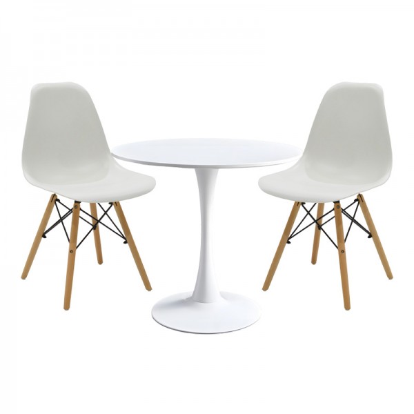 Ένα σετ τραπεζαρίας minimal αισθητικής που συνδυάζει αρμονικά το πρωτοποριακό design με τα πιο ανθεκτικά υλικά, κατάλληλο για να αναδείξει το ακόμη και το πιο μικρο χώρο. Σετ τριών τεμαχίων:- Τραπέζι Elijah pakoworld λευκό Φ60x74cmΤεχνικά χαρακτηριστικά: