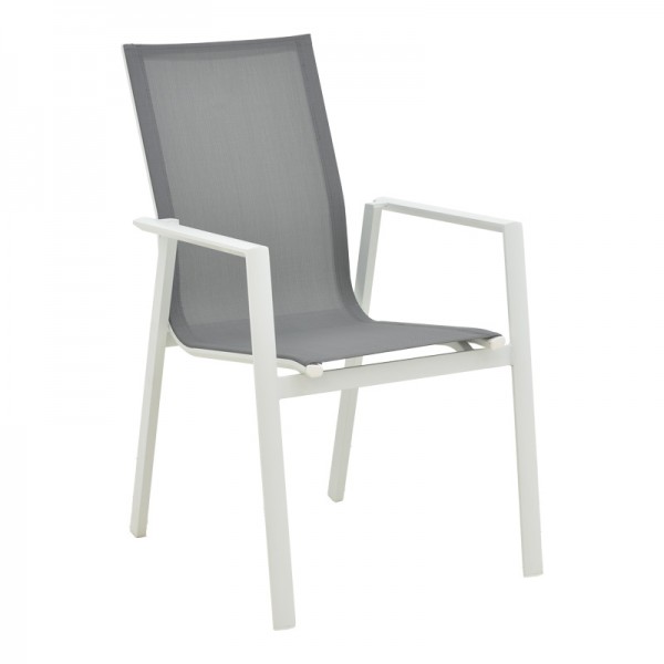 Σταθερός σκελετός από εξαιρετικής ποιότητας αλουμίνιο με αντοχή στην καταπόνηση και στη φθορά. Κυρίως σώμα καρέκλας από εξαιρετικής ποιότητας textilene. Το textilene είναι ύφασμα μεγάλης αντοχής στην ηλιακή ακτινοβολία και την υγρασία ενώ παράλληλα αφήνει το δέρμα να "αναπνέει" δημιουργώντας έτσι άνεση στο κάθισμα.
