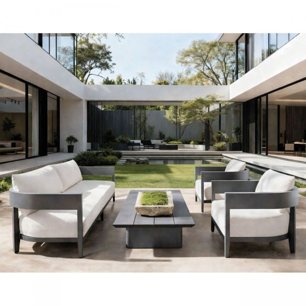 PALMER Set Καθιστικό ALU Ανθρακί: Καναπές+2 Πολυθρόνες+ Τραπεζάκι, Μαξιλάρια Μπεζ