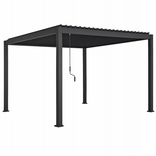 • Σύγχρονη πέργκολα αλουμινίου με ανοιγοκλεινόμενες μεταλλικές περσίδες για απόλυτο έλεγχο σκίασης και φωτισμού.