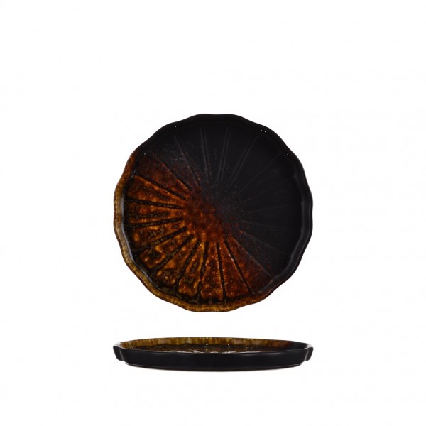 Πίατο ρηχό πορσελάνης με καθετα πλαϊνά φ20 2xΥ2 1cm σειρά HIKARI Reactive Καφέ PREGO - Σετ 6 c501941