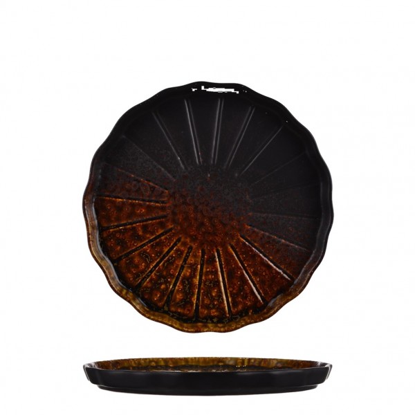 Πιάτο ρηχό πορσελάνης με καθετα πλαϊνά φ25 5xΥ2 5cm σειρά HIKARI Reactive Καφέ PREGO - Σετ 6 c501933