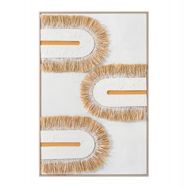 Ανάμεσα σε όλα τα διακοσμητικά στοιχεία, τα έργα τέχνης και ειδικά οι πίνακες ζωγραφικής παίζουν εξέχοντα ρόλο: όχι μόνο προσθέτουν χρώμα και αισθητική ομορφιά, αλλά δίνουν επίσης βάθος και νόημα στον χώρο μας. Ένας πίνακας μεταμορφώνει τον τρόπο που αντιλαμβανόμαστε έναν χώρο. Διακοσμήστε, λοιπόν, τον χώρο σας με έναν από τους καινούργιους πίνακες που προστέθηκαν στην γκάμα μας! Αυτός ο πίνακας είναι ζωγραφισμένος 100% με το χέρι σε ΛΕΥΚΟ φόντο, επάνω σε πλαίσιο (κορνίζα) από πολυστυρένιο σε ΜΠΕΖ χρώμα. Το ιδιαίτερο χαρακτηριστικό αυτού του πίνακα είναι η τρισδιάστατη (3D) υλοποίησή του.