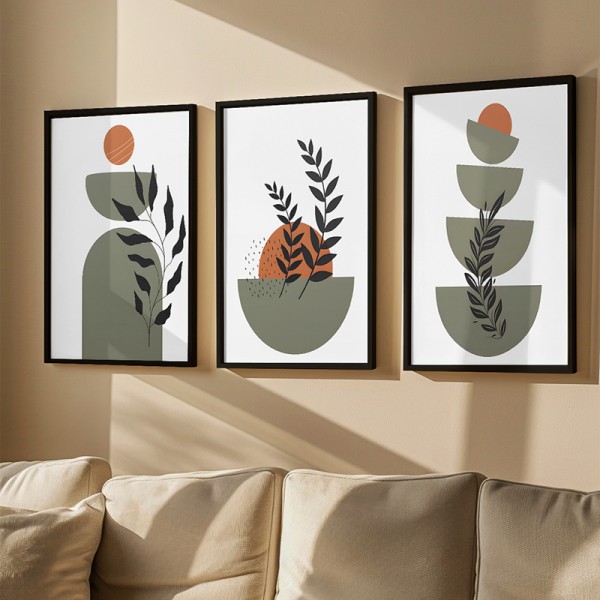 Αυτό το εντυπωσιακό τρίπτυχο είναι ο τέλειος τρόπος να προσθέσετε μια ζεστή, φυσική και ταυτόχρονα σύγχρονη πινελιά στον χώρο σας. Το σετ Corisia συνδυάζει την ηρεμία των φυτικών μοτίβων με τη λιτή ομορφιά της αφηρημένης τέχνης, δημιουργώντας ένα ισορροπημένο και καλαίσθητο αποτέλεσμα. Είναι ιδανικό για να δώσει βάθος και χαρακτήρα σε κάθε μοντέρνο σαλόνι ή κρεβατοκάμαρα.Τεχνικά χαρακτηριστικά: