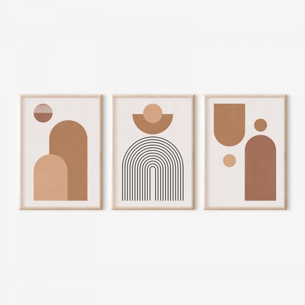 Αναβαθμίστε τον τοίχο σας με αυτό το εντυπωσιακό τριπτυχικό σετ πινάκων Jackalon. Οι αφηρημένες, γεωμετρικές συνθέσεις του Jackalon, με κυρίαρχους τους ζεστούς γήινους τόνους, ακολουθούν την Boho-Minimal αισθητική και προσδίδουν στον χώρο σας ένα εκλεπτυσμένο και ήρεμο στυλ.Τεχνικά χαρακτηριστικά: