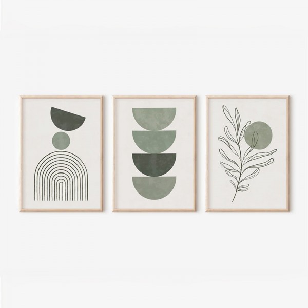 Αποφύγετε τους βαρετούς τόνους! Ο πίνακας Zerifa είναι η τέλεια δόση χρώματος που χρειάζεται ο χώρος σας. Αυτό το τριπτυχικό σετ συνδυάζει την αγαπημένη σκανδιναβική αισθητική με το ζωτικό πράσινο, δημιουργώντας ένα αποτέλεσμα που είναι ταυτόχρονα ήρεμο και εντυπωσιακό.Τεχνικά χαρακτηριστικά:
