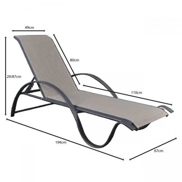 Ξαπλώστρα, Στοιβαζόμενη Αλουμίνιο Βαφή Ανθρακί Textilene Γκρι