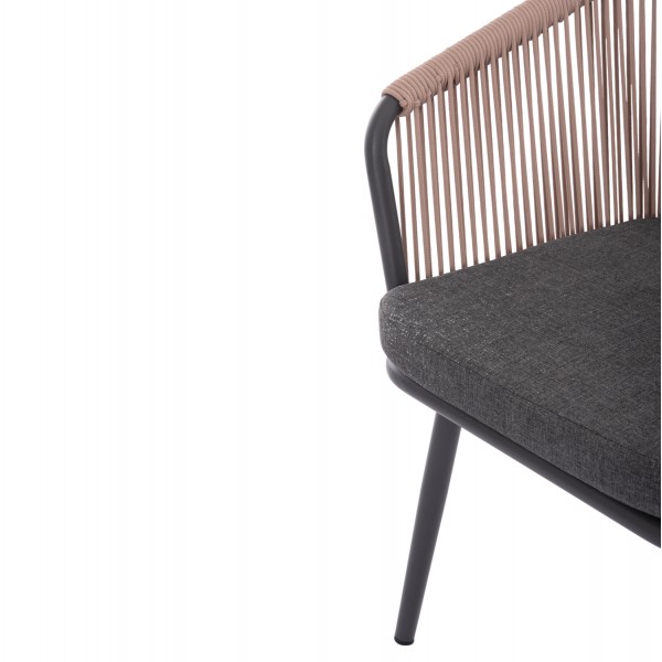 Η πολυθρόνα τραπεζαρίας HARRIET, κυρίως για επαγγελματική χρήση, είναι μοντέρνα, άνετη και σταθερή. Ο σχεδιασμός της που αγκαλιάζει το σώμα με το ΜΠΕΖ σχοινί επάνω στην ημικυκλική ΑΝΘΡΑΚΙ αλουμινένια κατασκευή με κλίση στα μπράτσα, θα αναβαθμίσει αισθητικά τον χώρο που θα την τοποθετήσετε σε συνδυασμό με ένα ταιριαστό τραπέζι. Επίσης, το μαξιλάρι σε ΑΝΘΡΑΚΙ απόχρωση συμπληρώνει ιδανικά την πολυθρόνα.