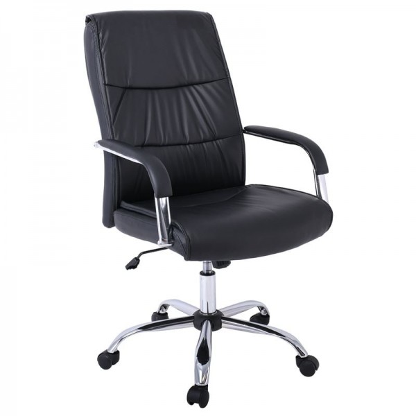 Πολυθρόνα Διευθυντή Βάση Μέταλλο Χρώμιο - PU Μαύρο