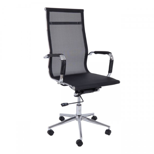 Πολυθρόνα Διευθυντή Μέταλλο Χρώμιο - Mesh Μαύρο