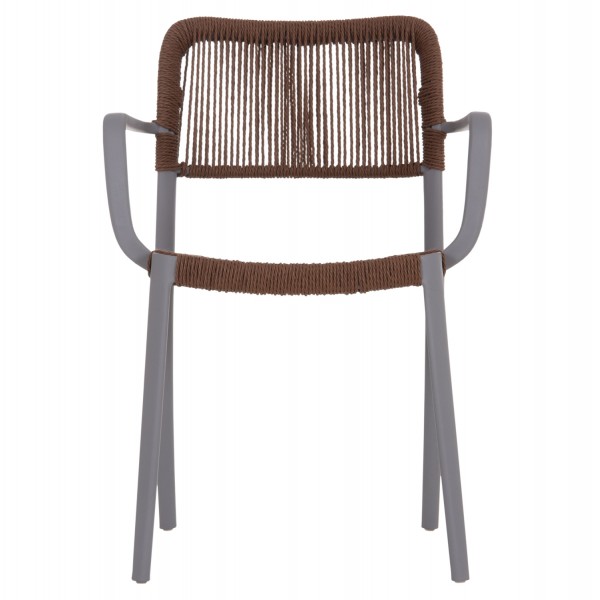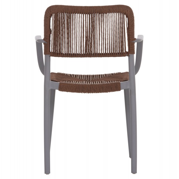 Η πολυθρόνα τραπεζαρίας εξωτερικού χώρου STRIDER συνδυάζει σύγχρονη αισθητική και πρακτικότητα, αποτελώντας ιδανική επιλογή για βεράντες, κήπους και επαγγελματικούς εξωτερικούς χώρους. Ο ανθεκτικός σκελετός από πολυπροπυλένιο σε γκρι απόχρωση συνδυάζεται αρμονικά με κάθισμα και πλάτη από καφέ σχοινί, προσφέροντας μοντέρνο χαρακτήρα και άνεση.
