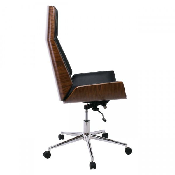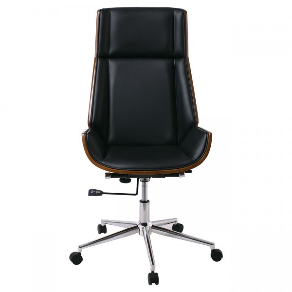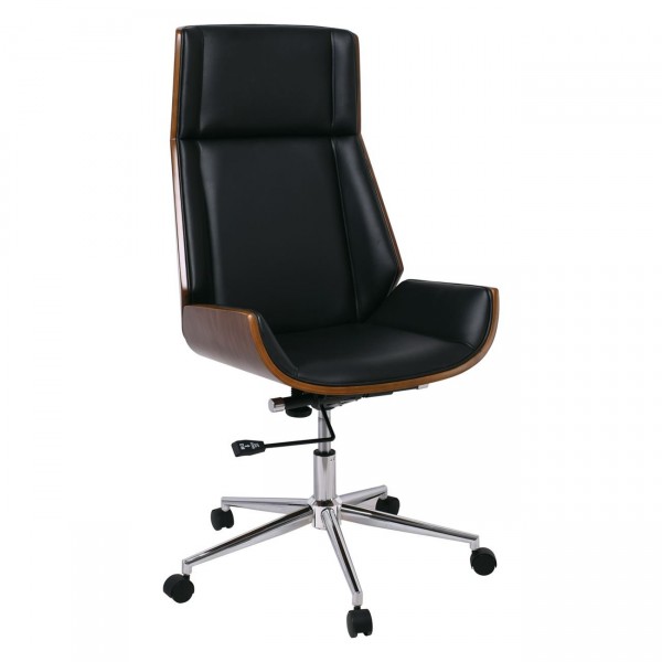 Πολυθρόνα Γραφείου Διευθυντή, Μέταλλο Χρώμιο Καρυδί - Pu Μαύρο