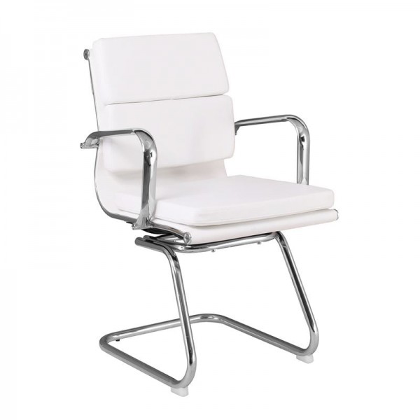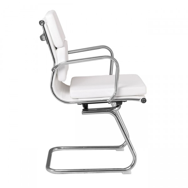 Πολυθρόνα Γραφείου Επισκέπτη, Μέταλλο Χρώμιο, PU Άσπρο