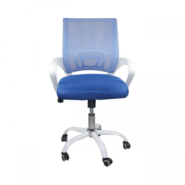 Πολυθρόνα Γραφείου με Ανάκλιση Άσπρο - Mesh Μπλε