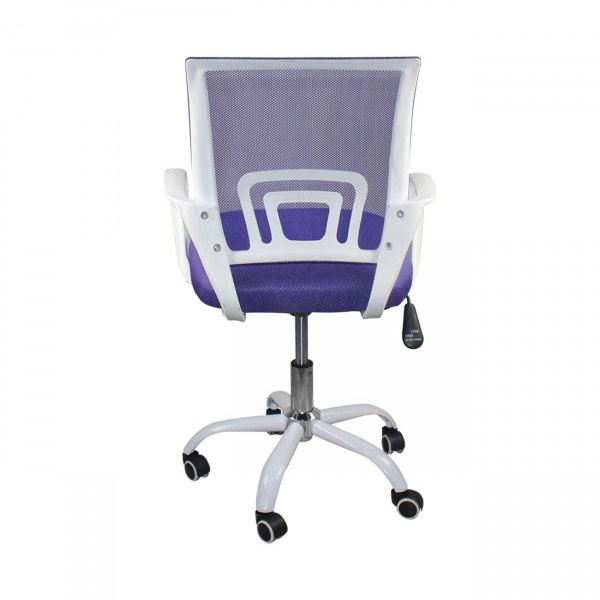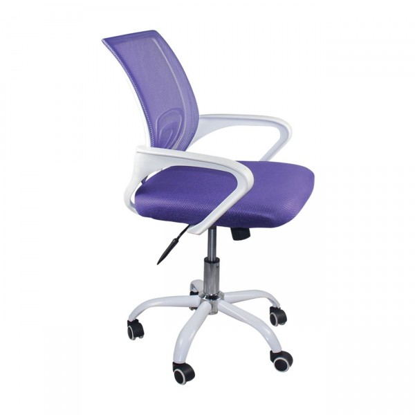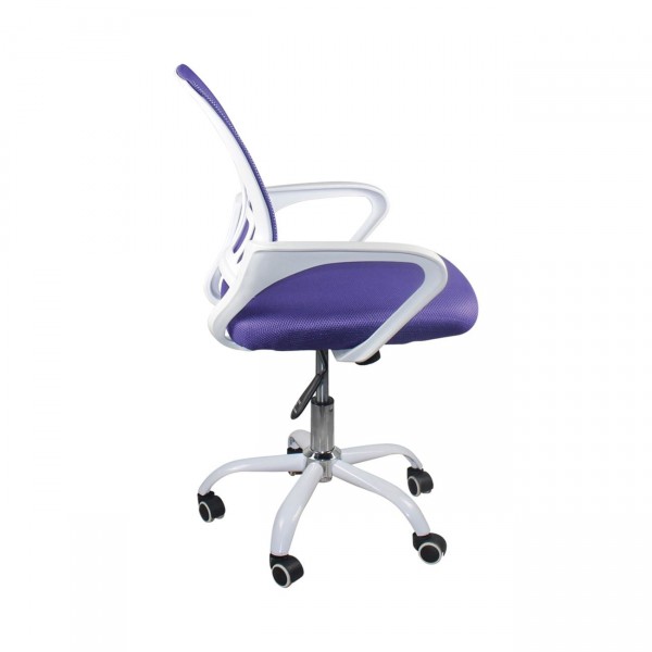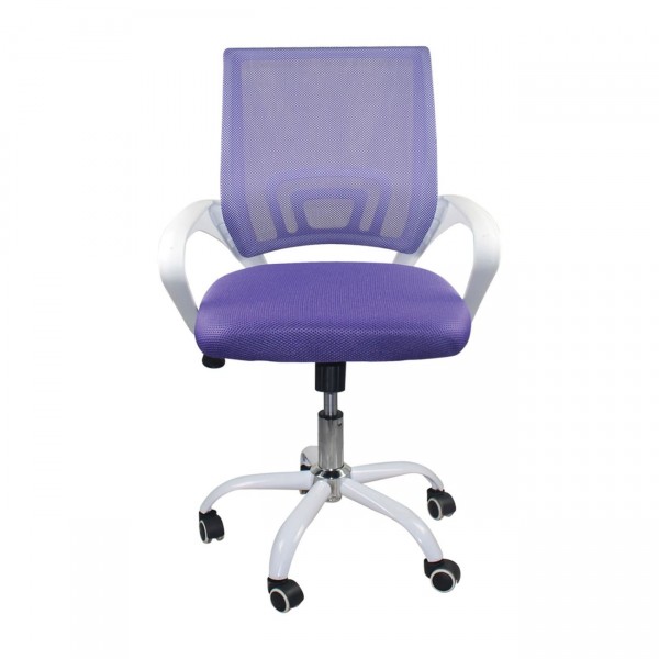Πολυθρόνα Γραφείου με Ανάκλιση Μέταλλο Βάση Βαφή Άσπρο - Mesh Μωβ