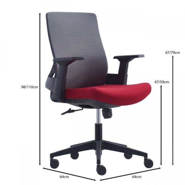 Πολυθρόνα Γραφείου Mesh Γκρι, Ύφασμα Μπορντώ