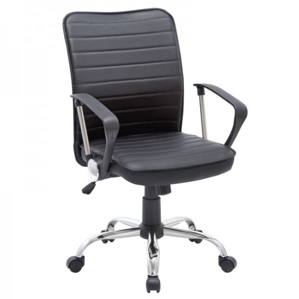 Πολυθρόνα Γραφείου Μέταλλο Βάση Χρώμιο, Pvc Μαύρο