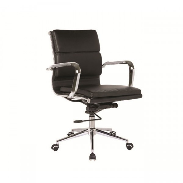 Πολυθρόνα Γραφείου Μέταλλο Χρώμιο, PU Μαύρο