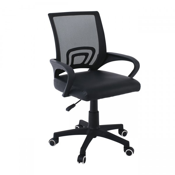 Πολυθρόνα Γραφείου χωρίς Ανάκλιση - Μαύρο Mesh - Pu