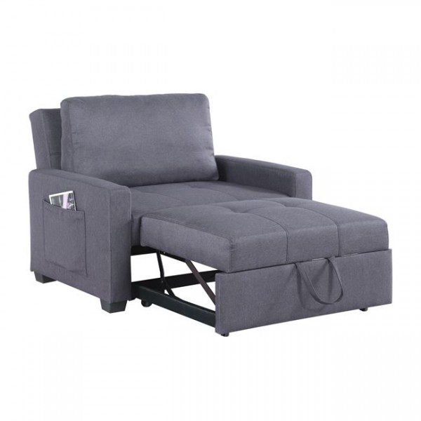 Πολυθρόνα κρεβάτι με ύφασμα γκρι και μεταλλικό σκελετό.