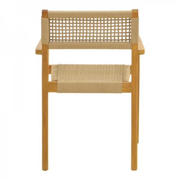 Αναβαθμίστε τον χώρο σας με αυτή την εκλεπτυσμένη πολυθρόνα Lengan, που συνδυάζει αριστοτεχνικά την ανθεκτικότητα του ξύλου teak με την ζεστασιά του χειροποίητου σχοινιού. Ιδανική τόσο για την τραπεζαρία όσο και για το καθιστικό ή έναν χώρο αναμονής, αυτή η πολυθρόνα προσφέρει έναν τέλειο συνδυασμό στυλ, άνεσης και διαχρονικής αισθητικής.H πολυθρόνα Lengan προσκαλεί σε στιγμές χαλάρωσης και προσθέτει μια αίσθηση πολυτέλειας και φυσικής ομορφιάς σε κάθε χώρο. Είναι η ιδανική επιλογή για όσους αναζητούν έπιπλα με χαρακτήρα και διαχρονική αξία. Τεχνικά χαρακτηριστικά: