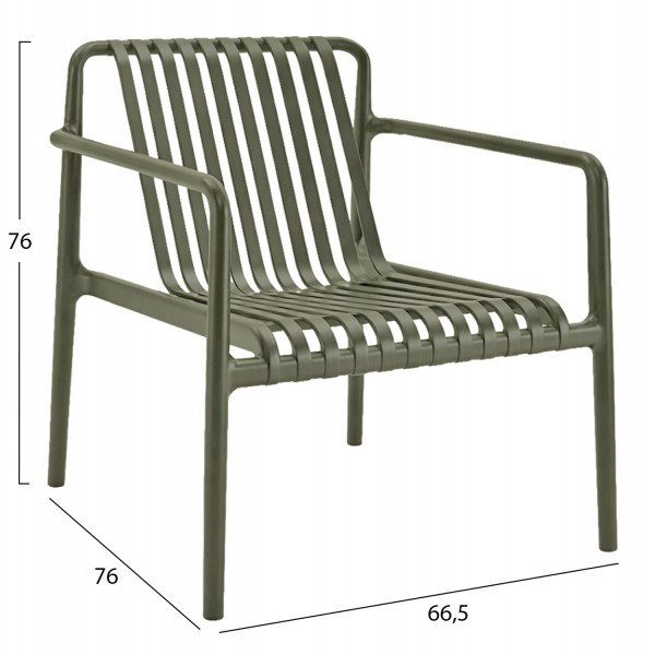 Η MALEN είναι μια σύγχρονη lounge πολυθρόνα εξωτερικού χώρου με χαμηλό και αναπαυτικό ύψος καθίσματος που προσκαλεί σε στιγμές χαλάρωσης. Ο μίνιμαλ σχεδιασμός της σε OLIVE GREEN απόχρωση κοσμεί κάθε βεράντα, κήπο ή επαγγελματικό χώρο φιλοξενίας, προσφέροντας καθαρές γραμμές και διαχρονική αισθητική. Ιδανική επιλογή για όσους αναζητούν ανθεκτικότητα, πρακτικότητα και κομψότητα σε ένα ενιαίο σύνολο.