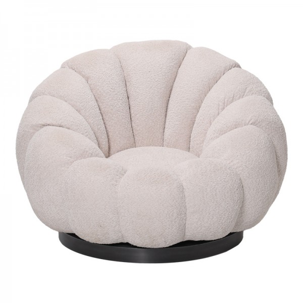 Πολυθρόνα περιστρεφόμενη με σκαμπό Nester pakoworld μπουκλέ ύφασμα σε μπεζ απόχρωση 98x97x69εκ c501601