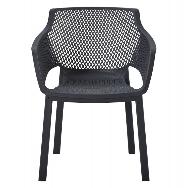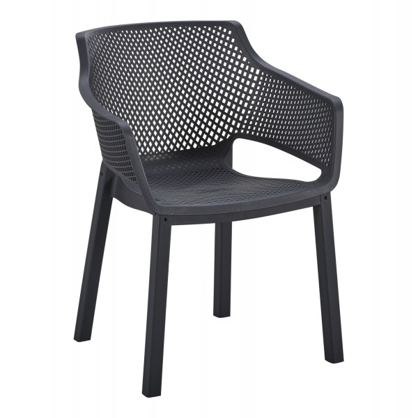 Η πολυθρόνα πολυπροπυλενίου PEGGY σε ΜΑΥΡΟ χρώμα αποτελεί μια κλασική επιλογή για χρήση σε εξωτερικούς χώρους, είτε επαγγελματικούς μιας και είναι ΣΤΟΙΒΑΖΟΜΕΝΗ (χώροι δεξιώσεων, εταιρείες catering, κλπ.) είτε για το σπίτι. Αποτελείται από ένα χυτό «τρυπητό» σύνολο καθίσματος-πλάτης-μπράτσων για καλύτερο αερισμό.
