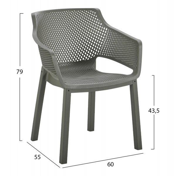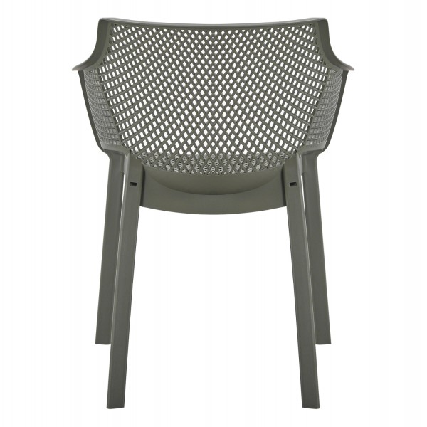 Η πολυθρόνα πολυπροπυλενίου PEGGY σε DARK OLIVE GREEN χρώμα αποτελεί μια κλασική επιλογή για χρήση σε εξωτερικούς χώρους, είτε επαγγελματικούς μιας και είναι ΣΤΟΙΒΑΖΟΜΕΝΗ (χώροι δεξιώσεων, εταιρείες catering, κλπ.) είτε για το σπίτι. Αποτελείται από ένα χυτό «τρυπητό» σύνολο καθίσματος-πλάτης-μπράτσων για καλύτερο αερισμό.