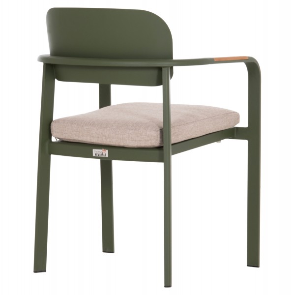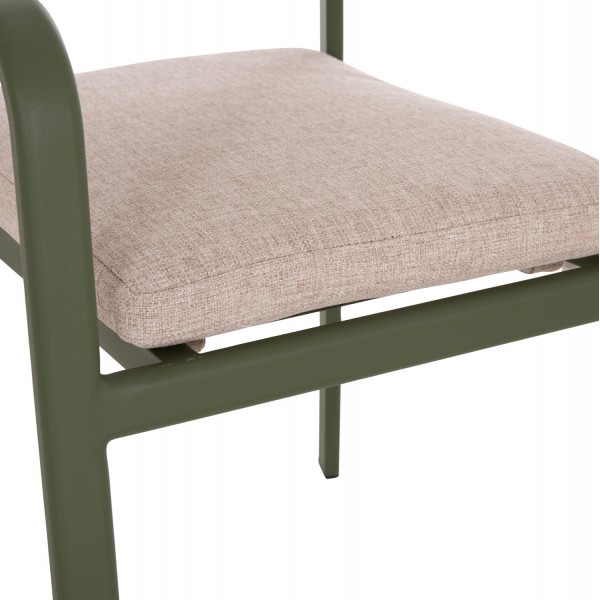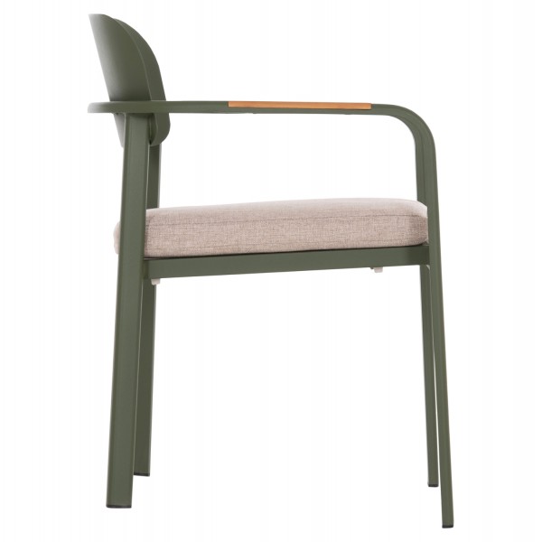 Η πολυθρόνα εξωτερικού χώρου ELARA συνδυάζει μοντέρνα αισθητική, ανθεκτικά υλικά και πρακτική λειτουργικότητα. Ο σκελετός από αλουμίνιο σε ΠΡΑΣΙΝΟ χρώμα προσφέρει υψηλή αντοχή στις εξωτερικές συνθήκες, ενώ τα διακοσμητικά τελειώματα από ξύλο teak στα μπράτσα προσθέτουν φυσική και ζεστή πινελιά. Το μαξιλάρι καθίσματος διαθέτει κάλυμμα OLEFIN σε ΜΠΕΖ χρώμα και αφρό 25D για άνεση κατά τη χρήση. Στοιβαζόμενη για εύκολη αποθήκευση.