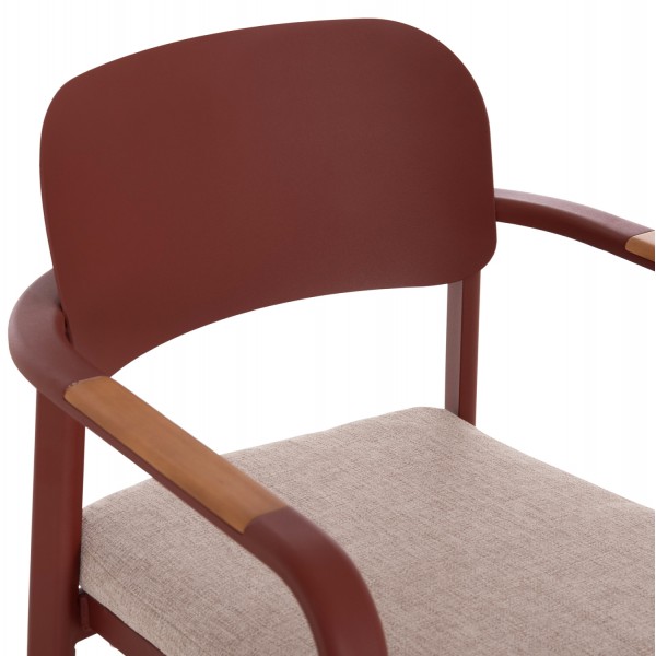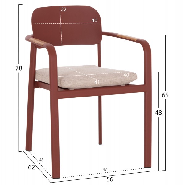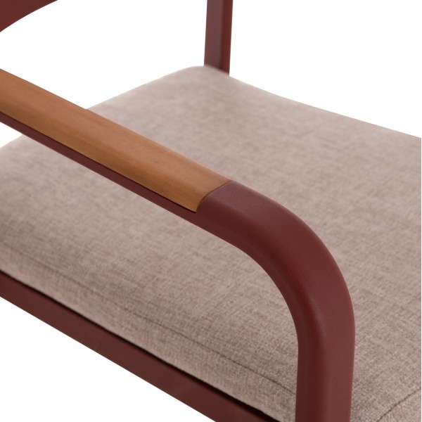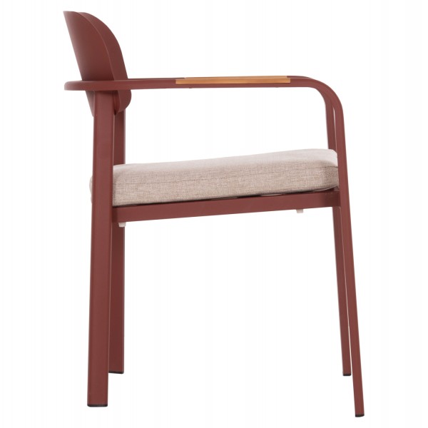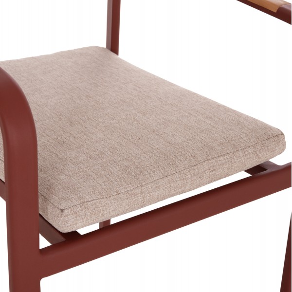 Η πολυθρόνα εξωτερικού χώρου ELARA συνδυάζει μοντέρνα αισθητική, ανθεκτικά υλικά και πρακτική λειτουργικότητα. Ο σκελετός από αλουμίνιο σε ΚΕΡΑΜΙΔΙ χρώμα προσφέρει υψηλή αντοχή στις εξωτερικές συνθήκες, ενώ τα διακοσμητικά τελειώματα από ξύλο teak στα μπράτσα προσθέτουν φυσική και ζεστή πινελιά. Το μαξιλάρι καθίσματος διαθέτει κάλυμμα OLEFIN σε ΜΠΕΖ χρώμα και αφρό 25D για άνεση κατά τη χρήση. Στοιβαζόμενη για εύκολη αποθήκευση.