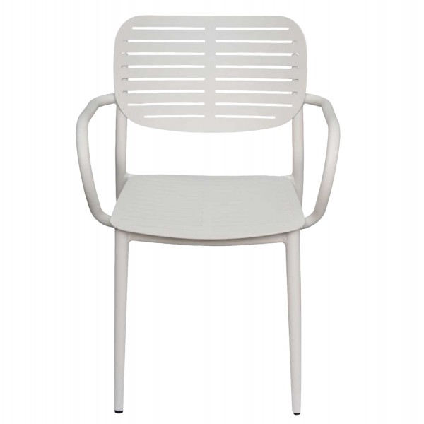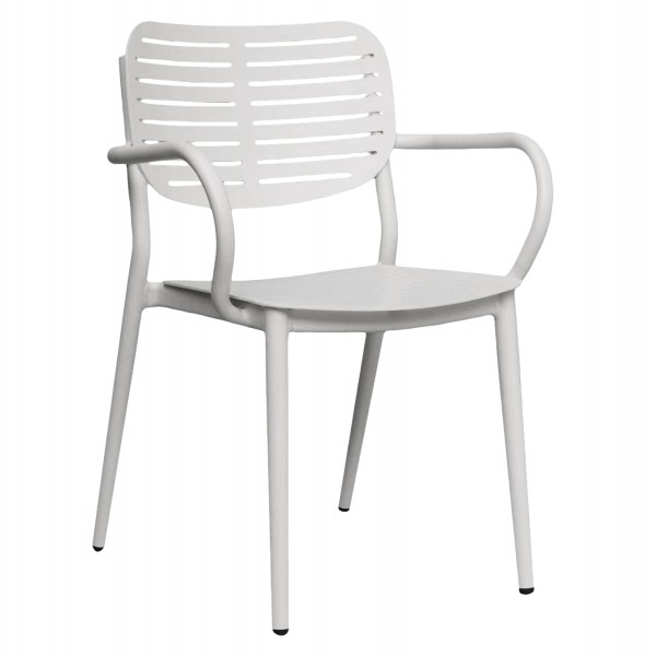 Η πολυθρόνα HILLIARD είναι εξολοκλήρου κατασκευασμένη από αλουμίνιο σε ΛΕΥΚΟ ματ χρώμα. Σχεδιαστικά, είναι λιτή με όμορφες καμπύλες, ενώ το γεγονός ότι είναι ΣΤΟΙΒΑΖΟΜΕΝΗ την κάνει ιδιαιτέρως πρακτική αφού μπορείτε να την αποθηκεύσετε στον μικρότερο δυνατό χώρο.