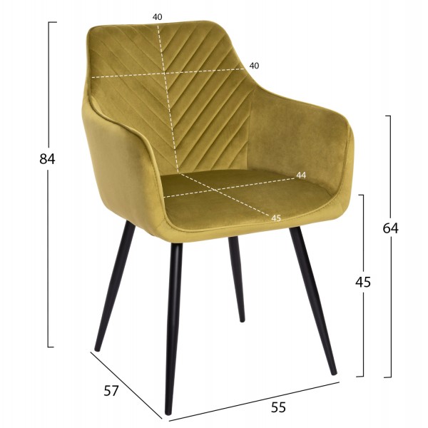 Η πολυθρόνα LATRELL είναι μοντέρνα, άνετη και σταθερή! Το λαδί (olive green) χρώμα της είναι πολύ ιδιαίτερο, ενώ τα 4 πόδια είναι σε μαύρο χρώμα. Το κάθισμα της πολυθρόνας είναι άνετο και η πλάτη διαθέτει όμορφες ραφές, ενώ η πολυθρόνα δίνει την αίσθηση ότι αγκαλιάζει το σώμα με τα μπράτσα που είναι ενιαία με το κάθισμα και την πλάτη. Πρόκειται για μια πρόταση λιτή, κυρίως για την τραπεζαρία σας.