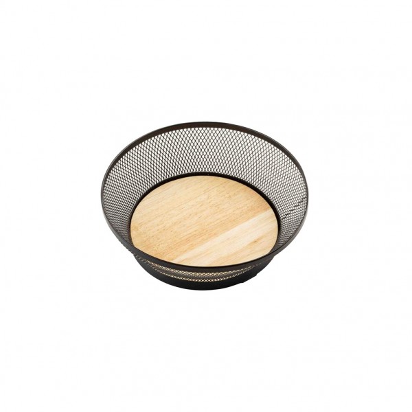 Ψωμιέρα σιδερένια μαύρη φ19xΥ6cm με ξύλινη βάση φ14 5cm TableCraft c504171