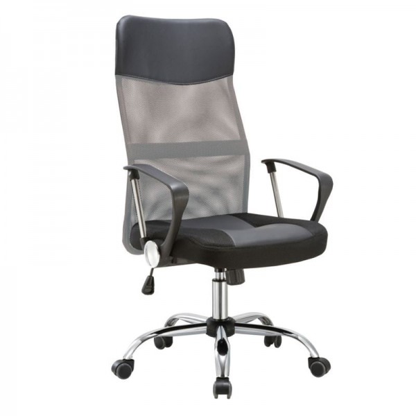 Πολυθρόνα Γραφείου Διευθυντή, Βάση Χρώμιο, Pvc - Mesh, Γκρι - Μαύρο