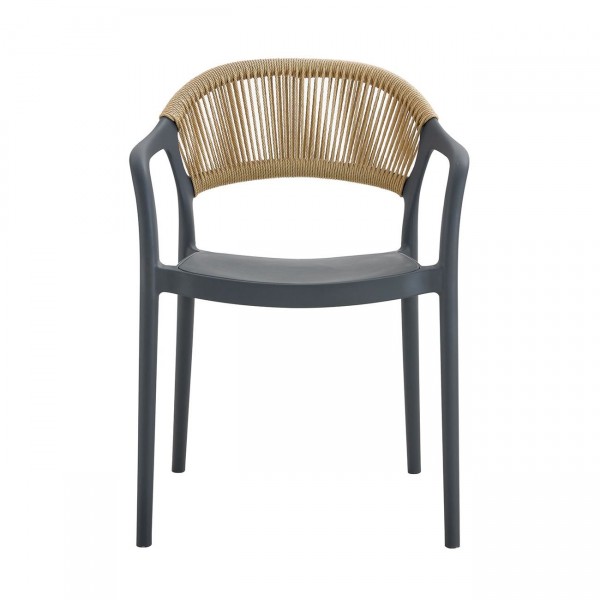 Πολυθρόνα-Pro Στοιβαζόμενη, PP-UV Ανθρακί, Rope Wicker Φυσικό