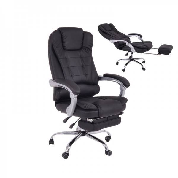 Relax Πολυθρόνα Γραφείου Διευθυντή, με Υποπόδιο, Βάση Χρώμιο,PU Μαύρο